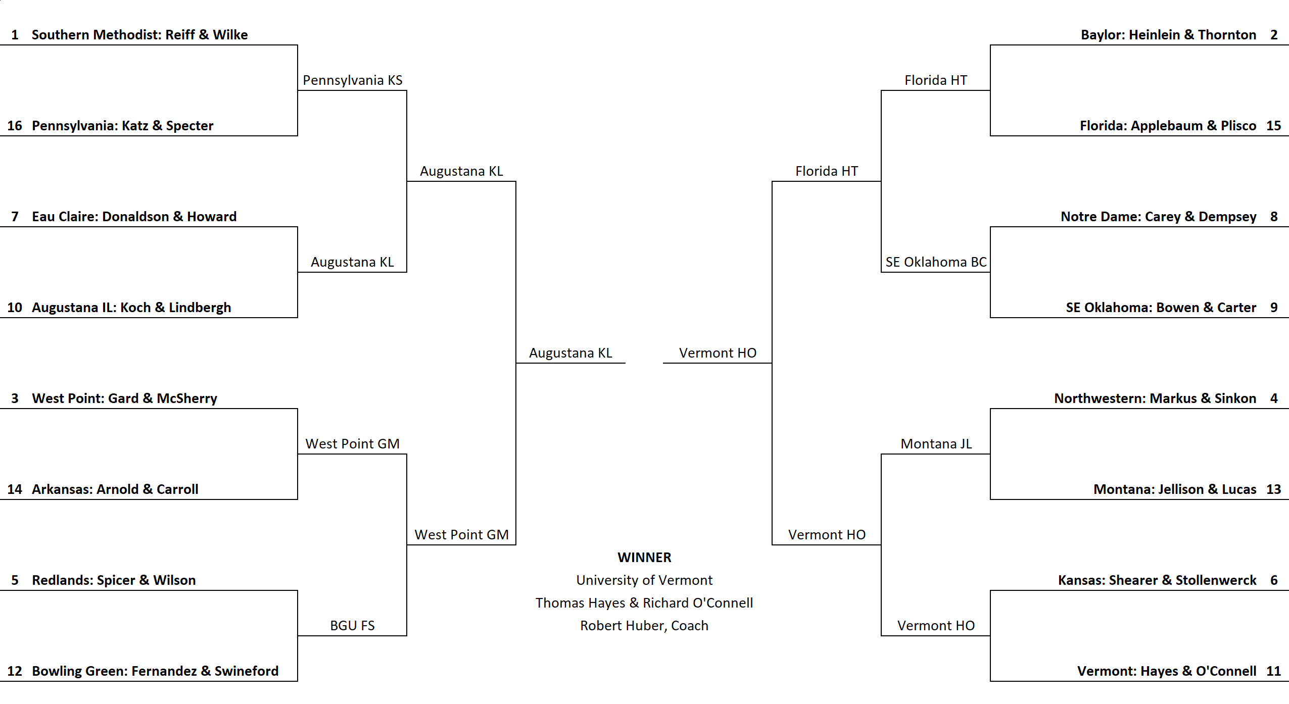 - Wisconsin – Eau Claire: Richard Donaldson & Cletus Howard (5-3)