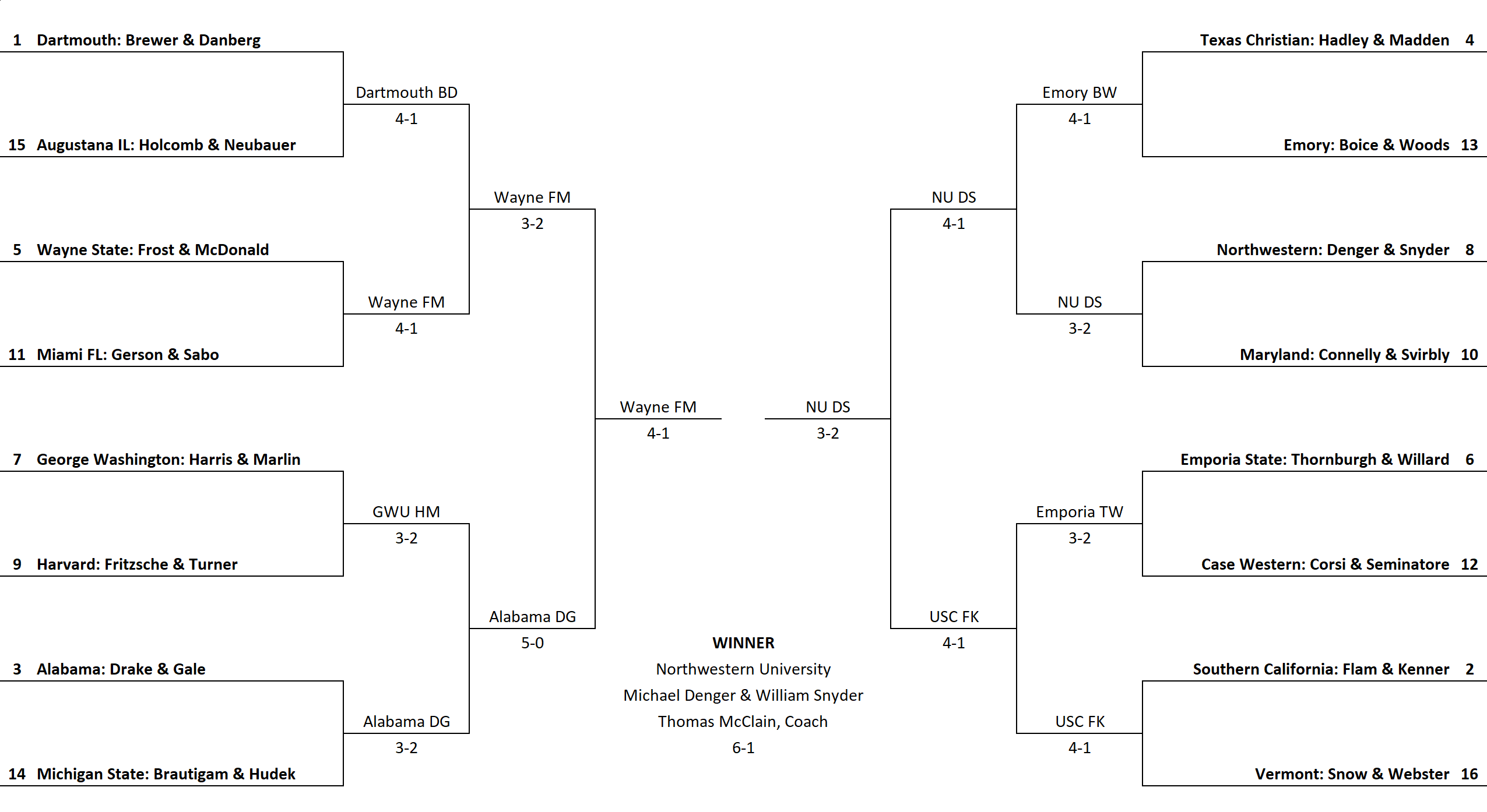 - Northwestern: Michael Denger & William Snyder (5-3, 15)