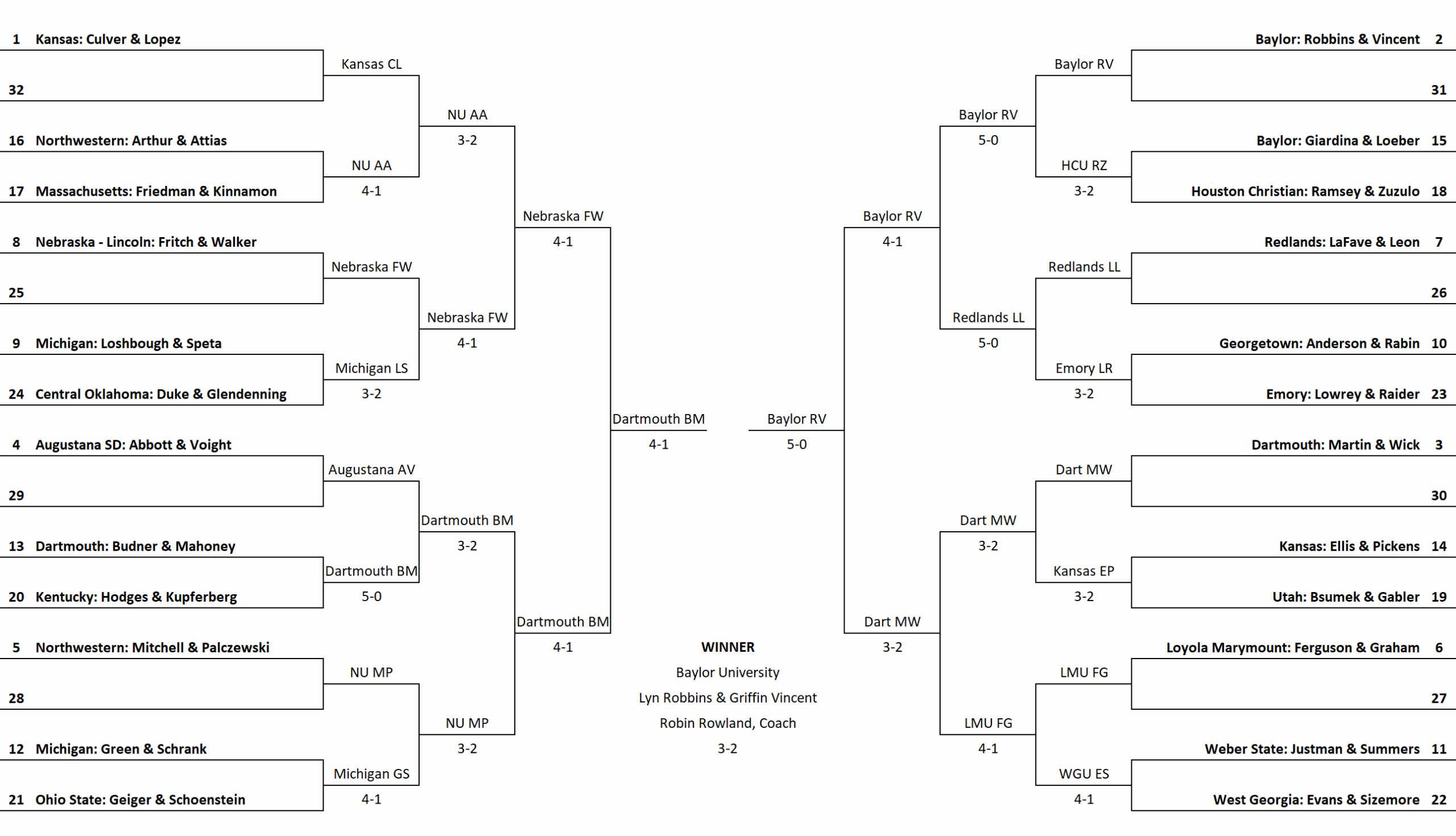 1. Baylor: Lyn Robbins & Griffin Vincent (16)