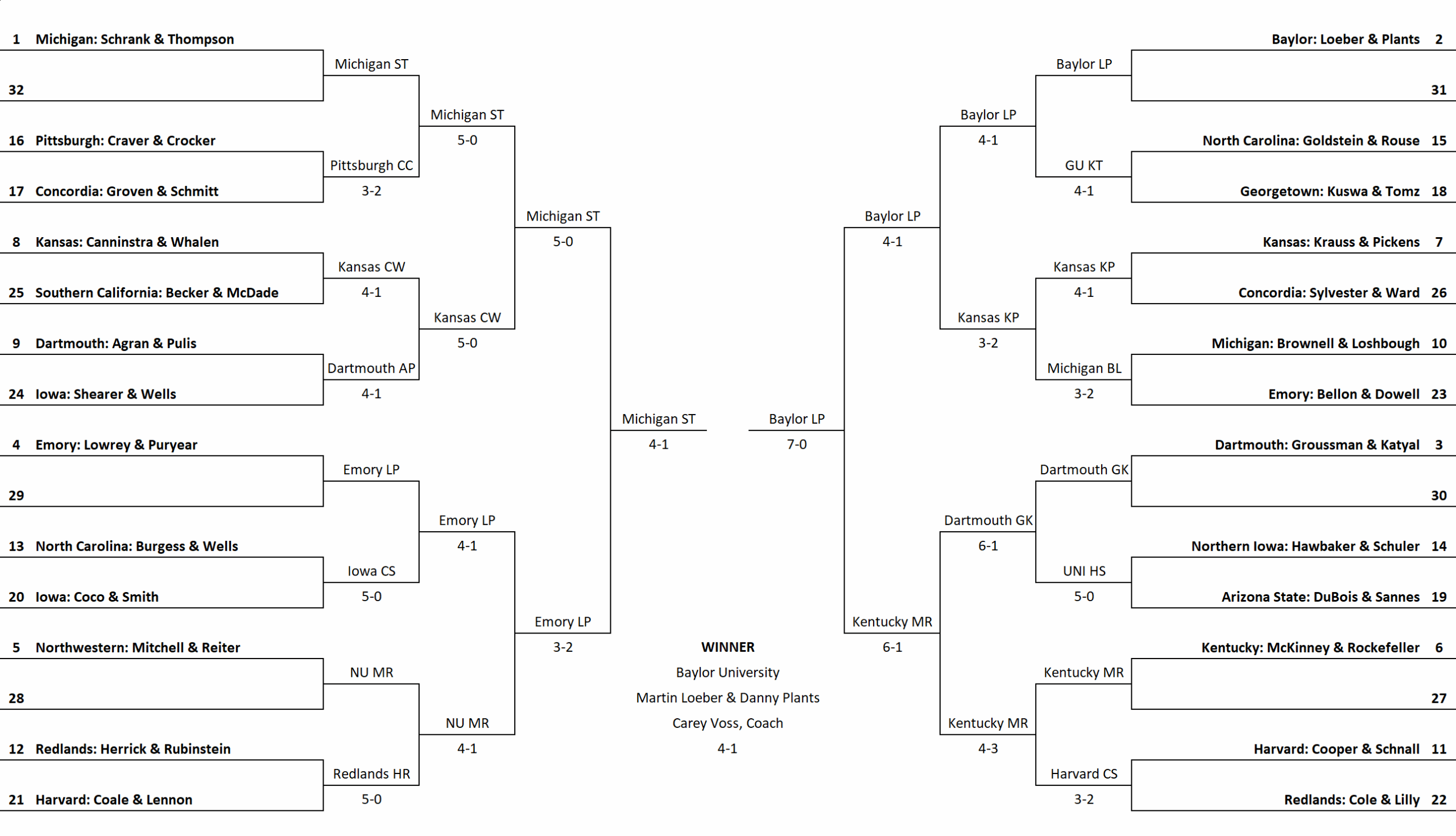 - Baylor: Martin Loeber & Danny Plants (7-1, 18)