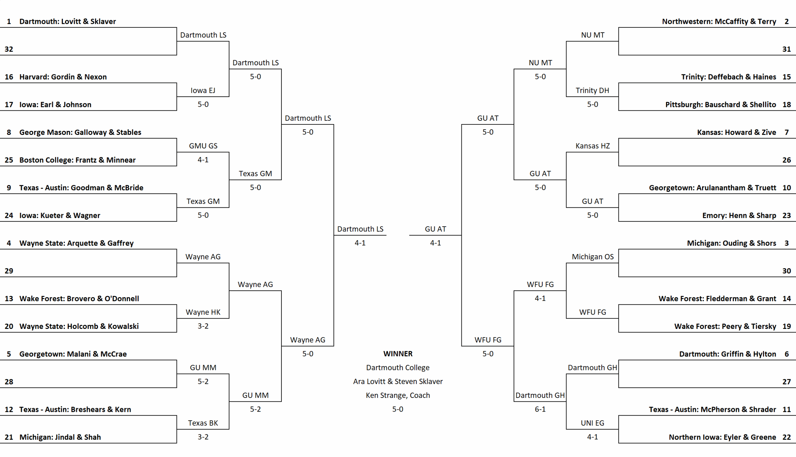 - Dartmouth: Ara Lovitt & Steven Sklaver (11)