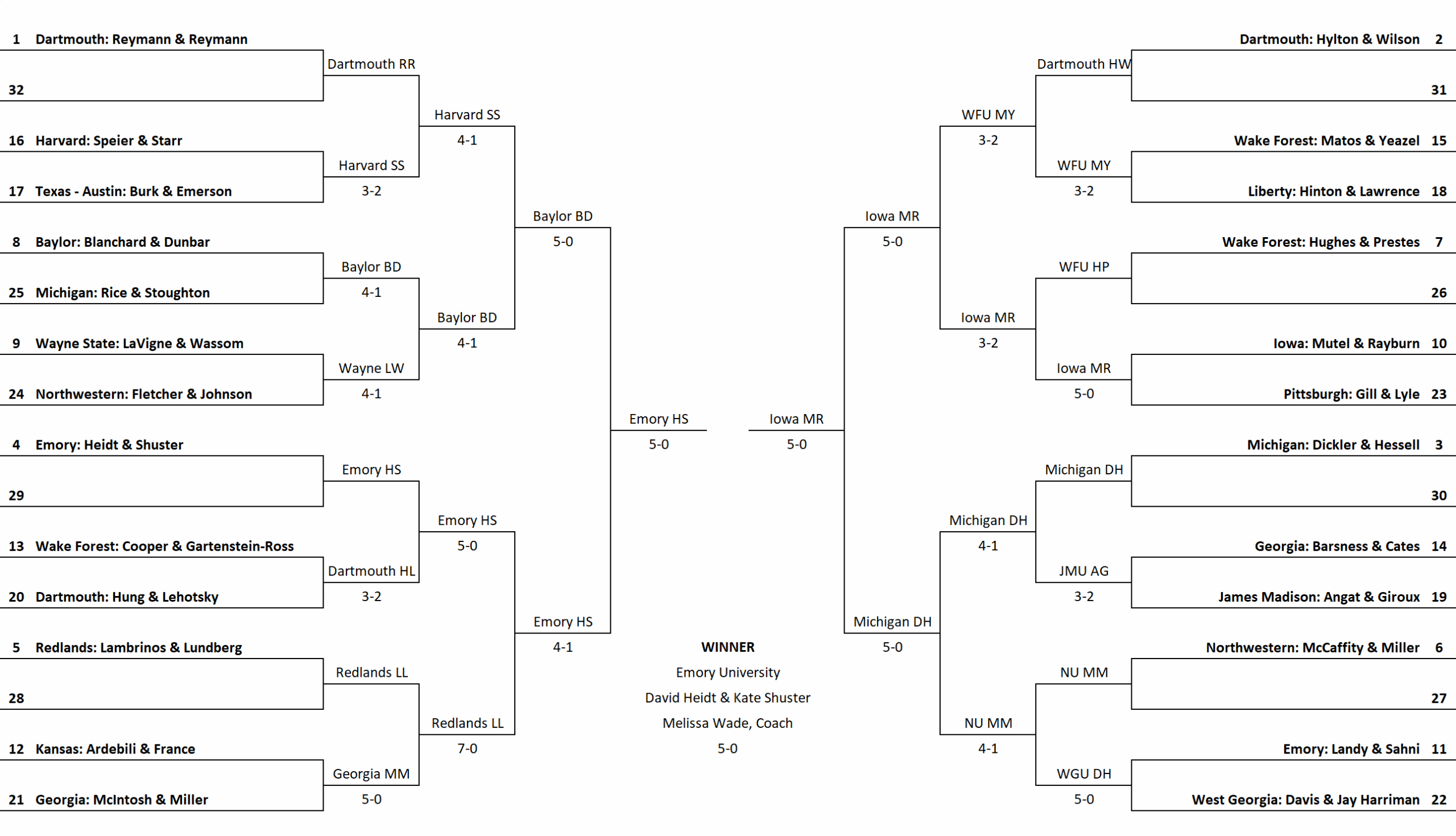 11. Emory: Ronna Landy & Anjan Sahni (6-2, 17)