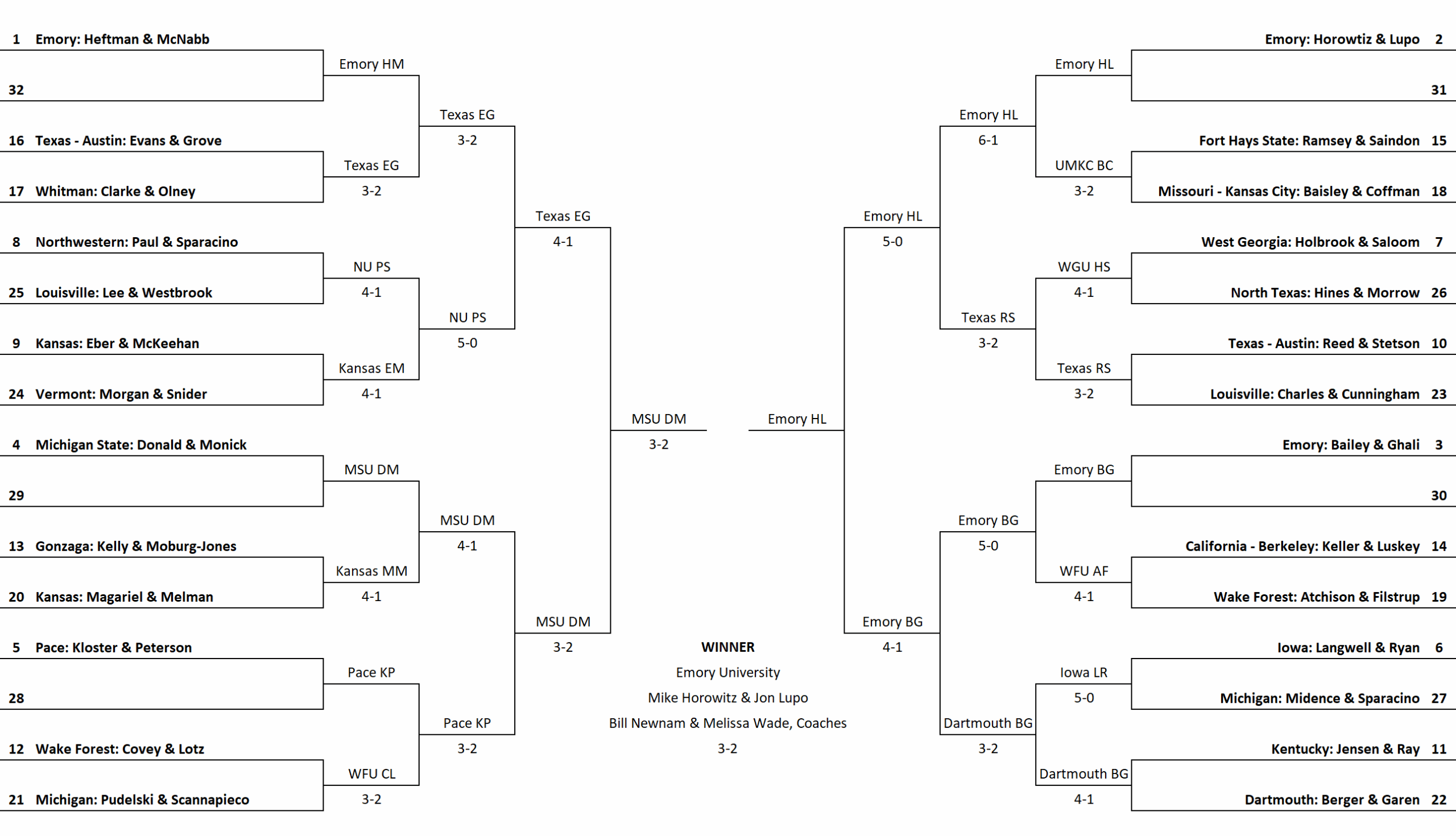1. Emory: Larry Heftman & Jeff McNabb (7-1, 20 ballots)