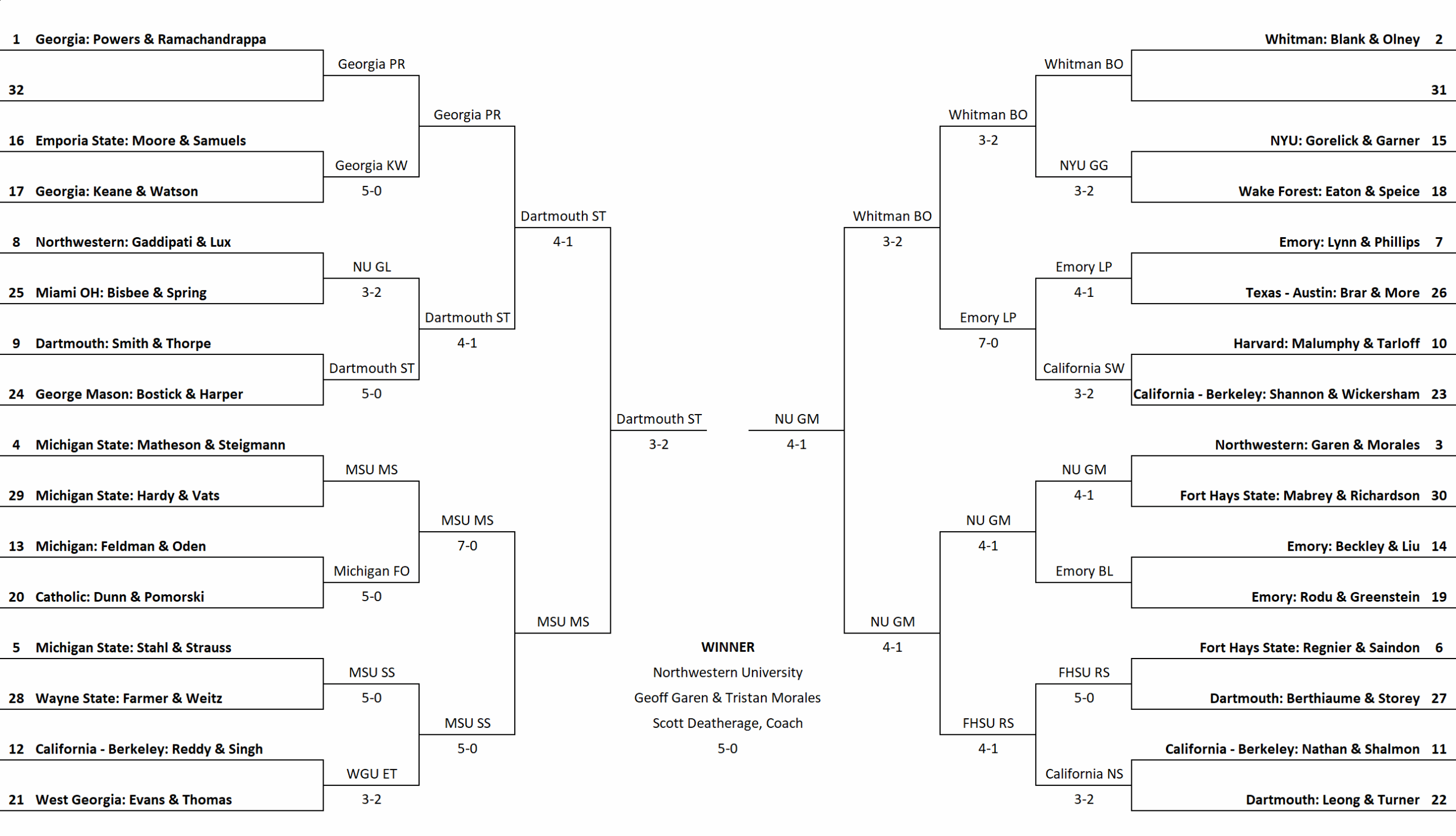 - Northwestern: Geoff Garen & Tristan Morales (15)