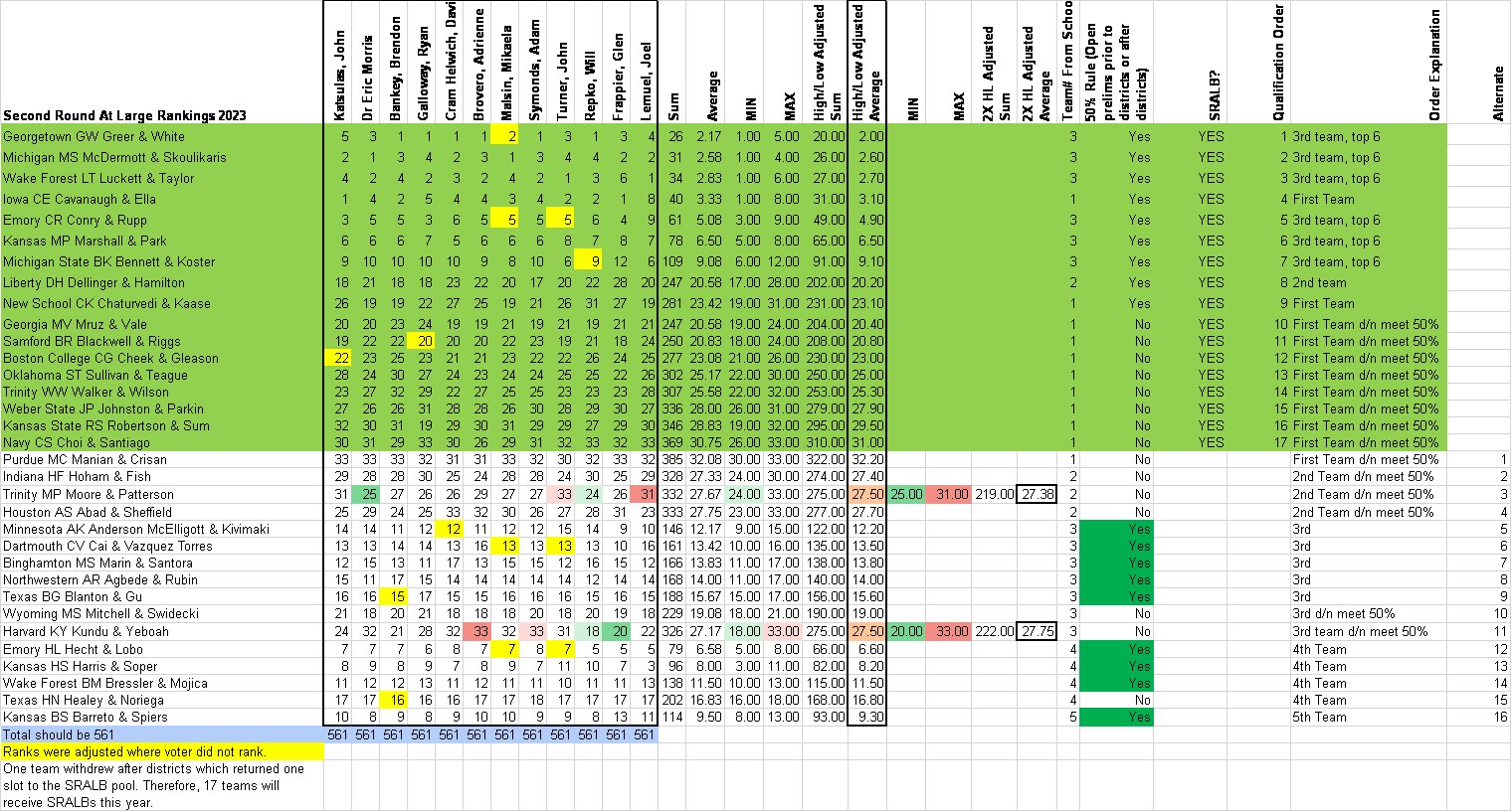 - Michigan: Kelly Phil & Rafael Pierry (7-1, 21 ballots)