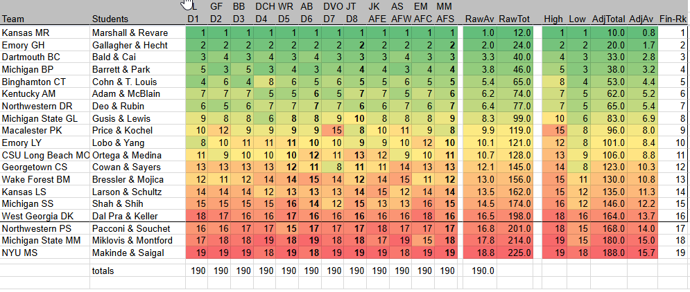 - Emory: Daniel Gallagher & Margaret Hecht (7-1, 21)