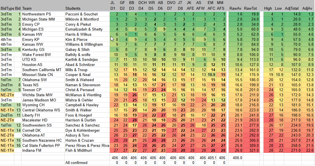 - Northwestern: Buck Arney & Annabeth Lundberg (5-3, 15)